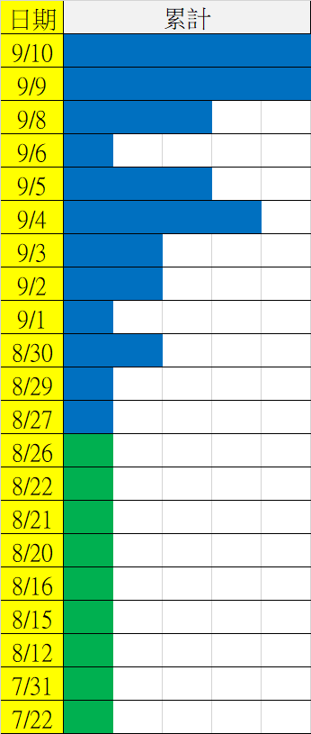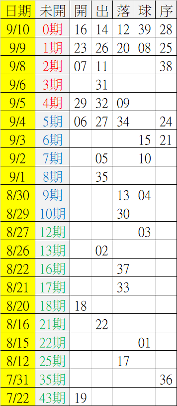 9/11 今彩539 遠星統計表