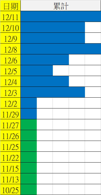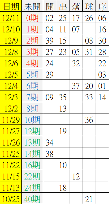 12/12 今彩539 遠星統計表