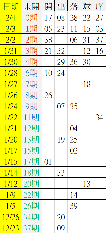 遠星號碼:01 02 04 09 13 14 19 20 25 33 39 共11支。