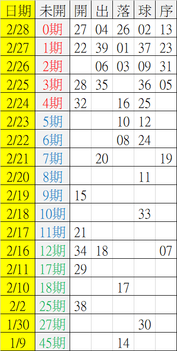 3/1 今彩539 遠星統計表