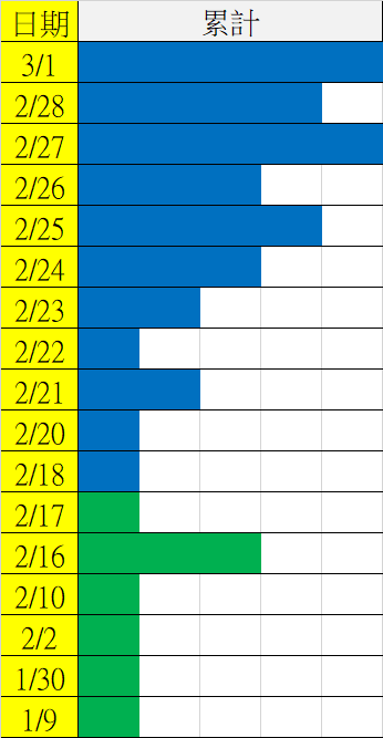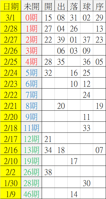 3/2 今彩539 遠星統計表