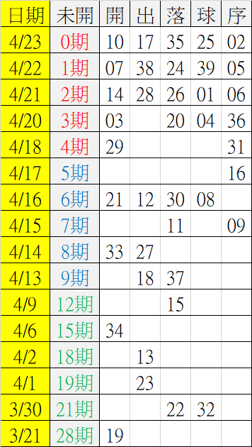 4/24 今彩539 遠星統計表