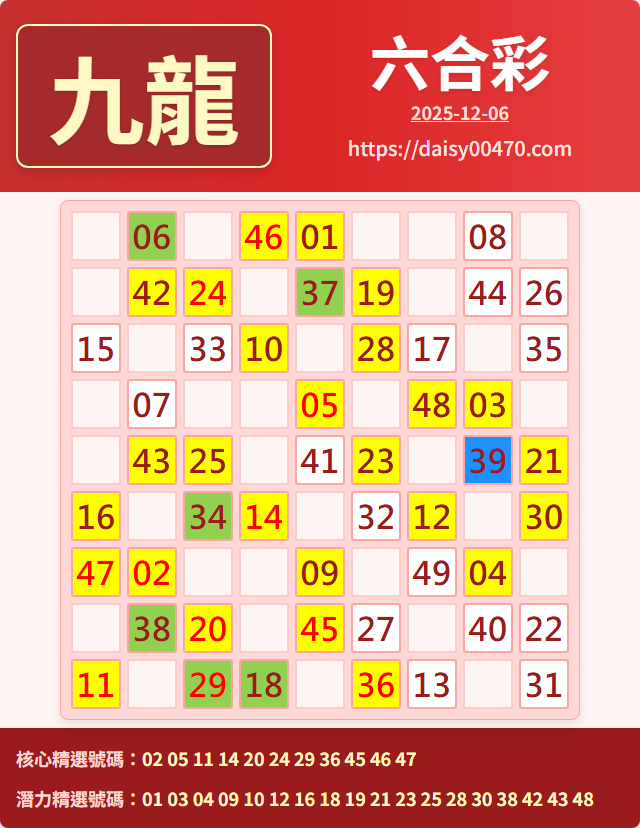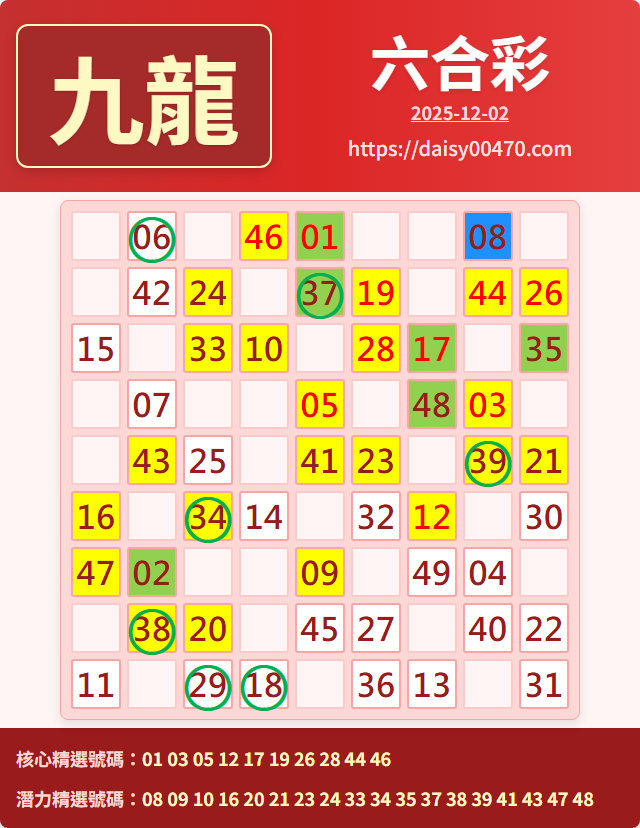 12/6 六合彩 九龍 精選 高機牌 合牌參考
