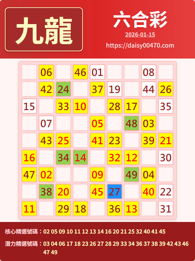 1/15 六合彩 九龍 精選 高機牌 合牌參考