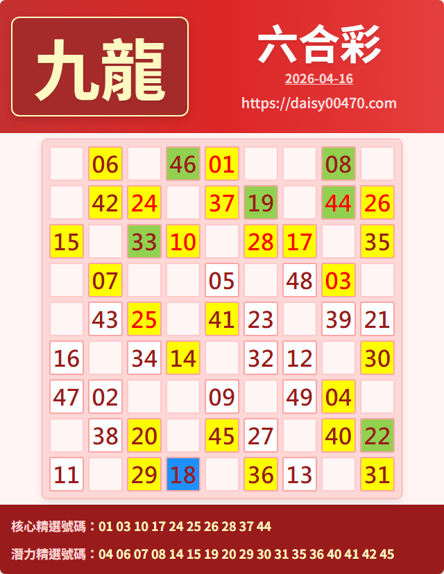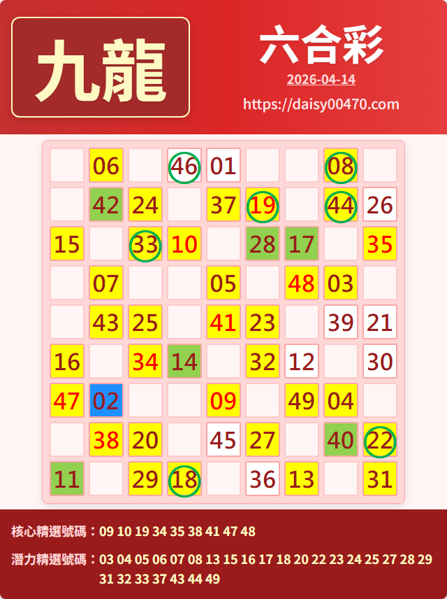 4/16 六合彩 九龍 精選 高機牌 合牌參考
