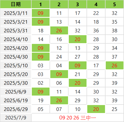 每隔10期開出