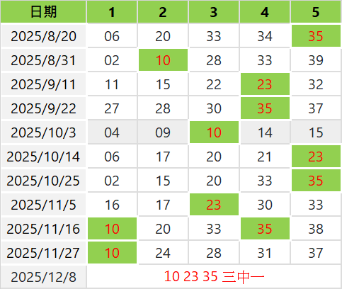 每隔11期開出