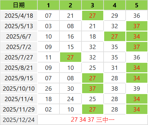 每隔25期開出