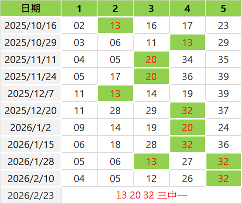 每隔13期開出