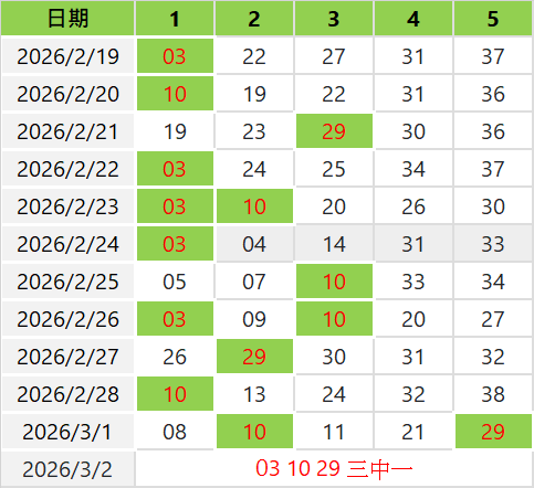 2/26 開出 10