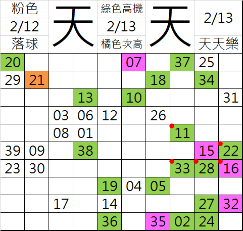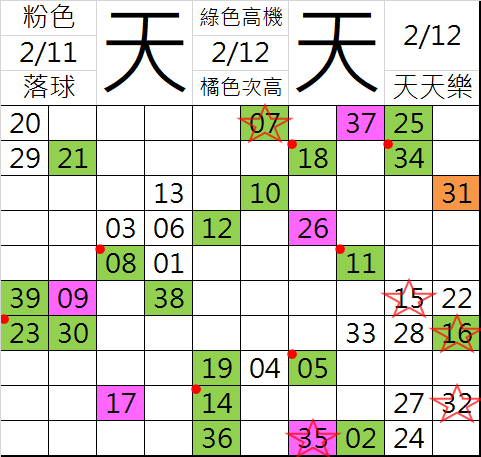 2/13 天天樂 九宮 精選 高機牌 合牌參考