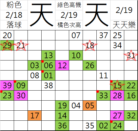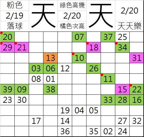 2/20 天天樂 九宮 精選 高機牌 合牌參考