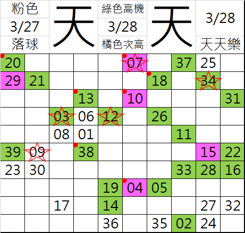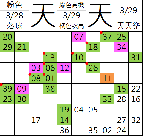 3/29 天天樂 九宮 精選 高機牌 合牌參考
