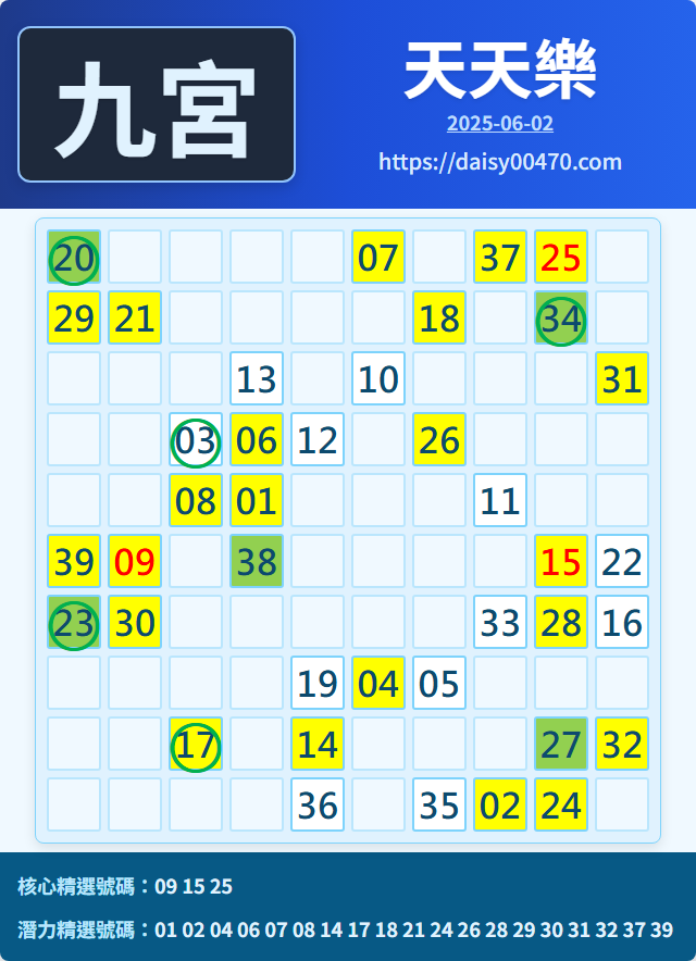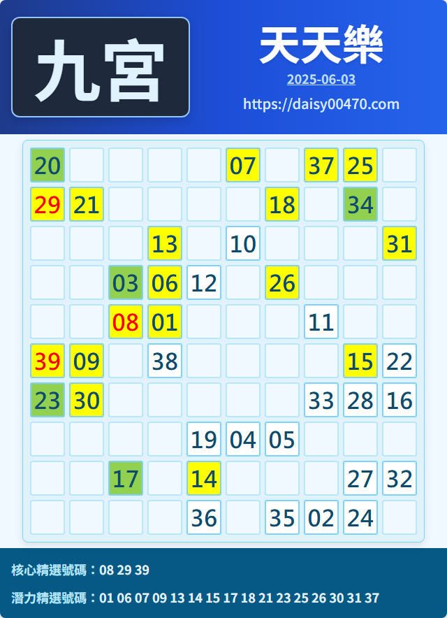 6/3 天天樂 九宮 精選 高機牌 合牌參考