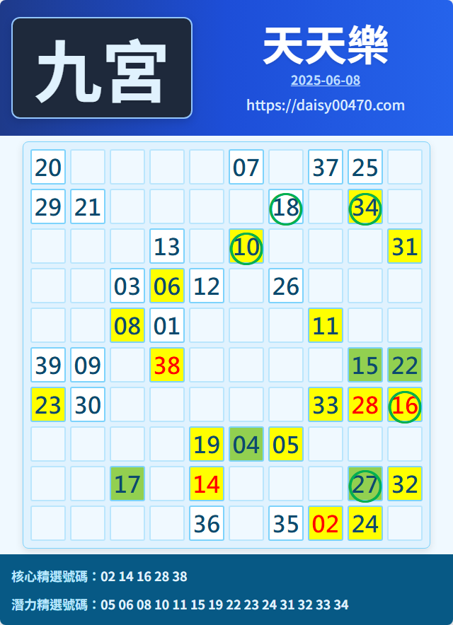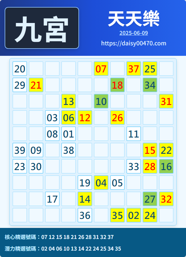 6/9 天天樂 九宮 精選 高機牌 合牌參考