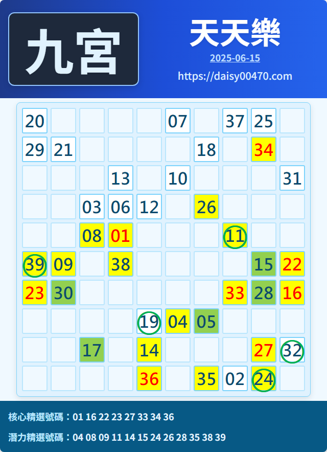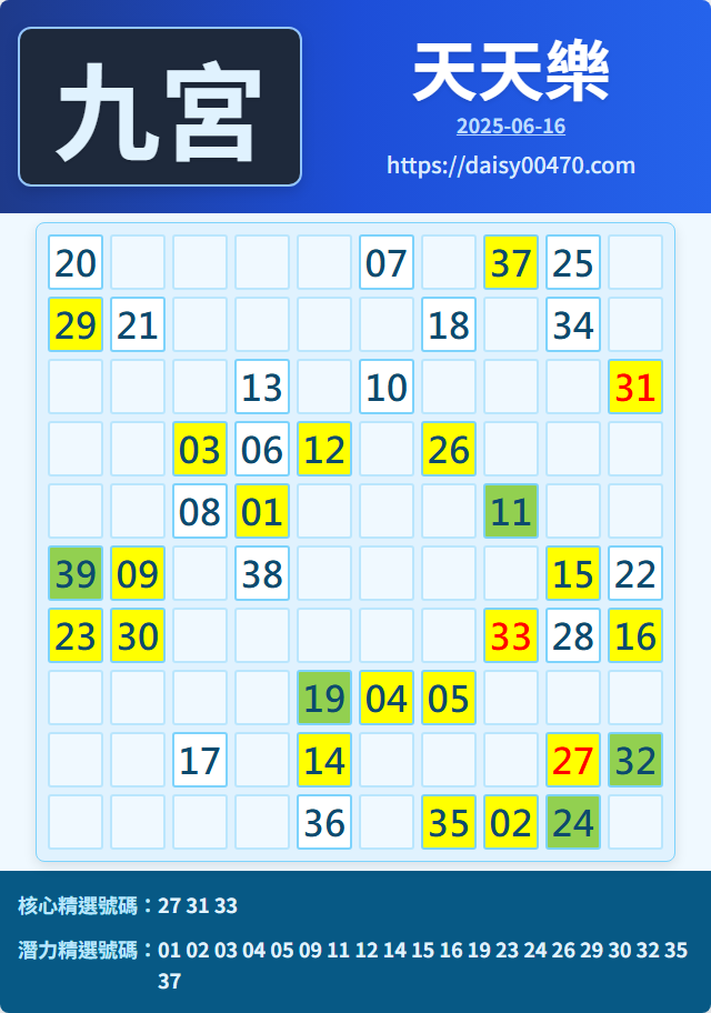 6/16 天天樂 九宮 精選 高機牌 合牌參考