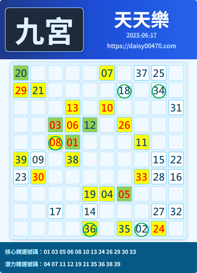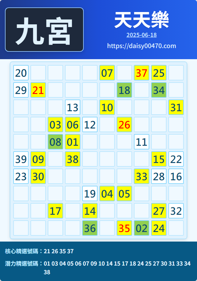 6/18 天天樂 九宮 精選 高機牌 合牌參考