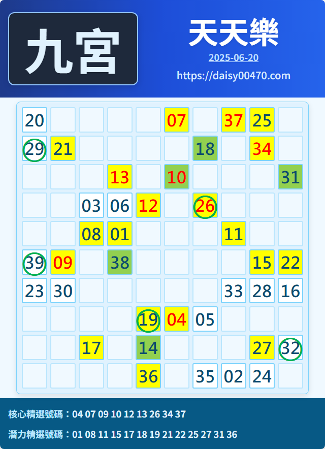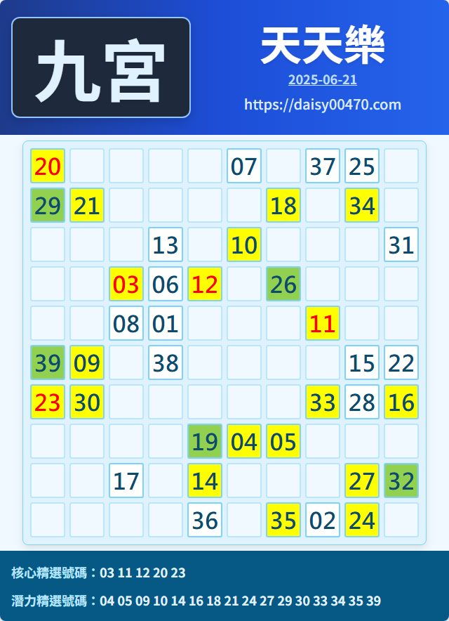 6/21 天天樂 九宮 精選 高機牌 合牌參考