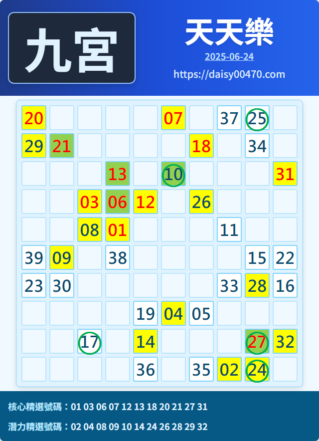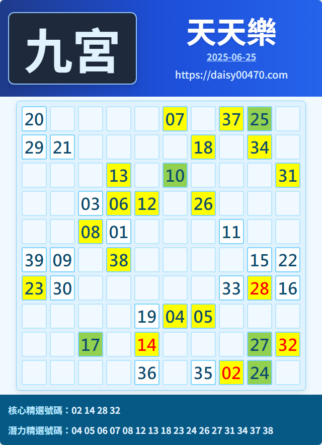6/25 天天樂 九宮 精選 高機牌 合牌參考