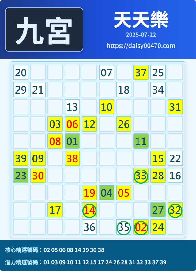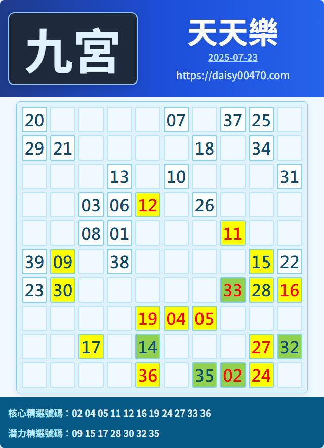 7/23 天天樂 九宮 精選 高機牌 合牌參考