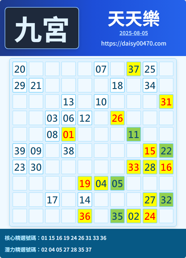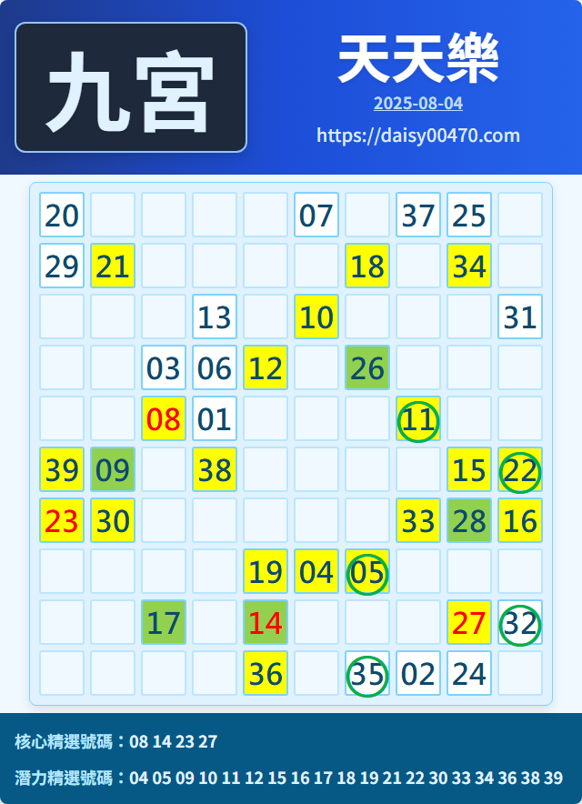 8/5 天天樂 九宮 精選 高機牌 合牌參考