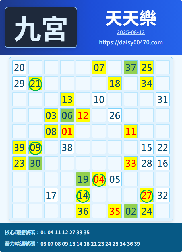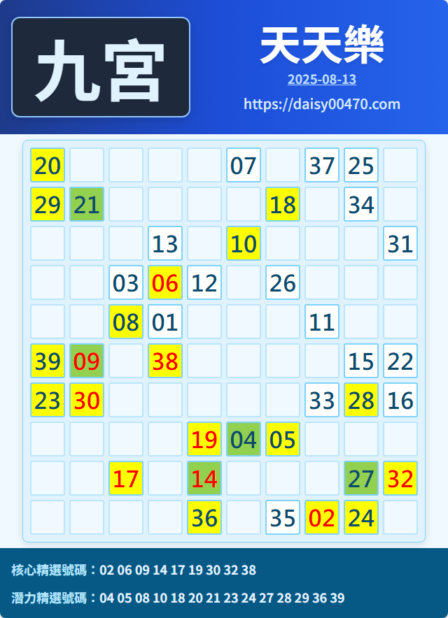 8/13 天天樂 九宮 精選 高機牌 合牌參考