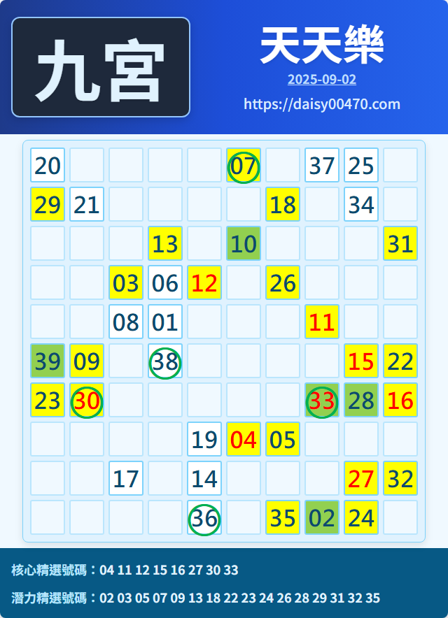 9/2 天天樂 九宮 精選 高機牌 合牌參考
