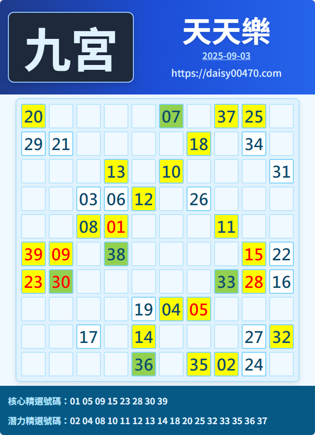 9/3 天天樂 九宮 精選 高低機牌 合牌參考