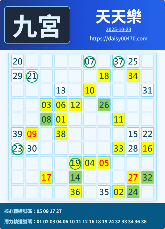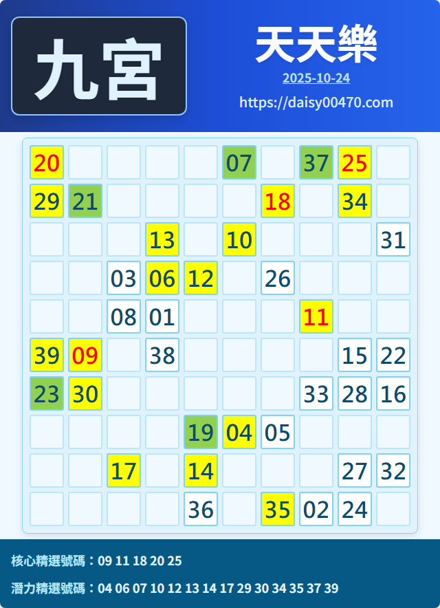 10/24 天天樂 九宮 精選 高機牌 合牌參考