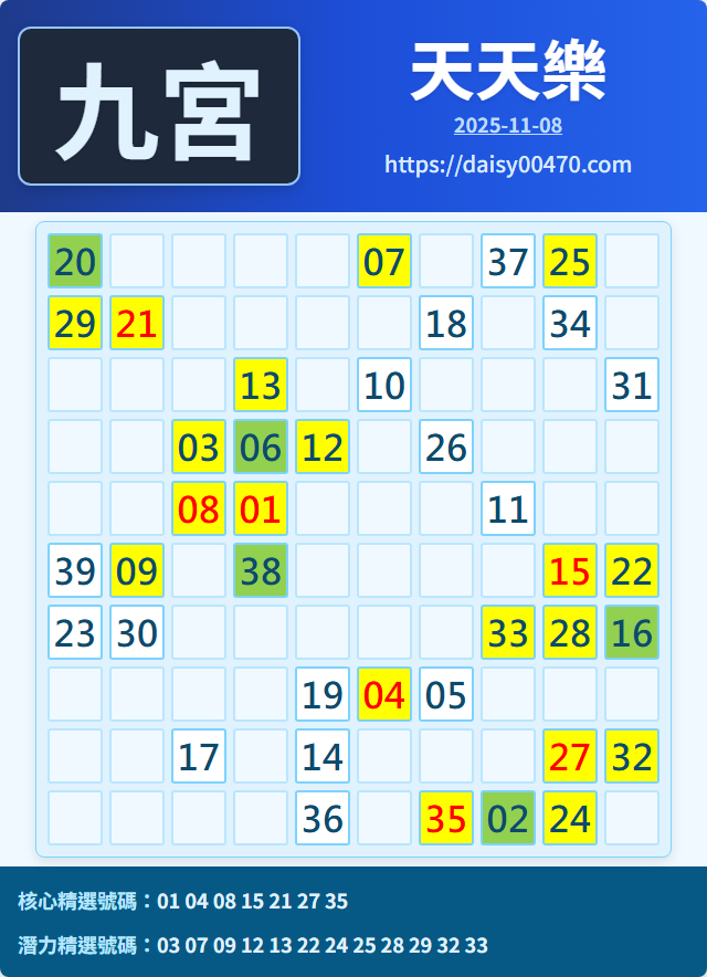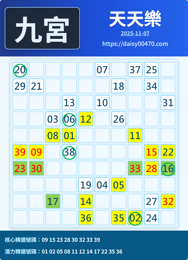 11/8 天天樂 九宮 精選 高低機牌 合牌參考