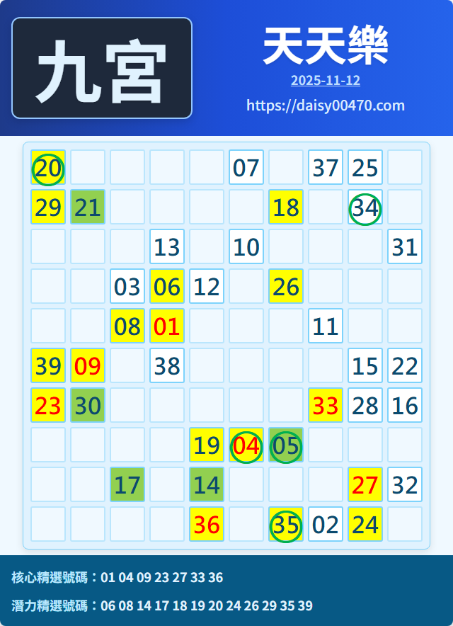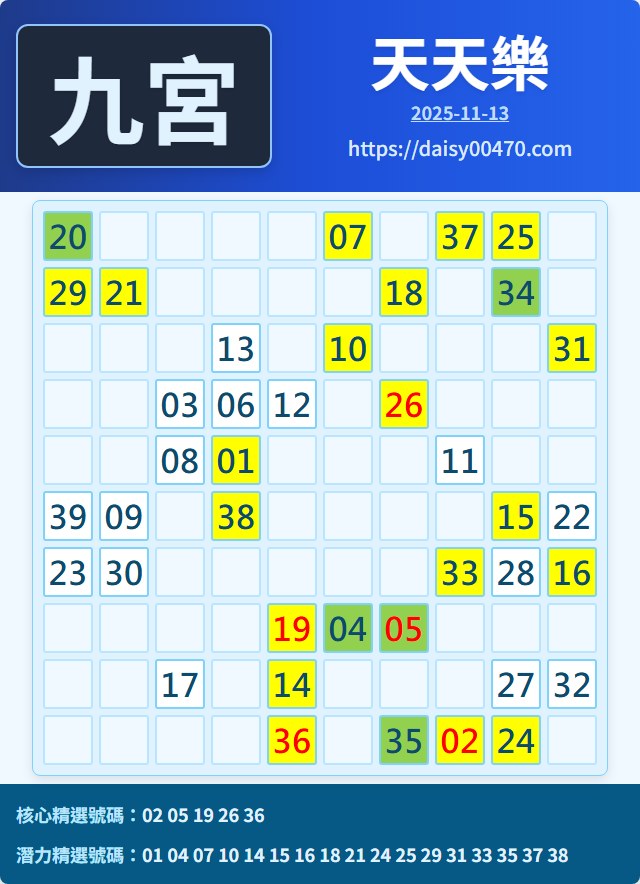 11/13 天天樂 九宮 精選 高機牌 合牌參考