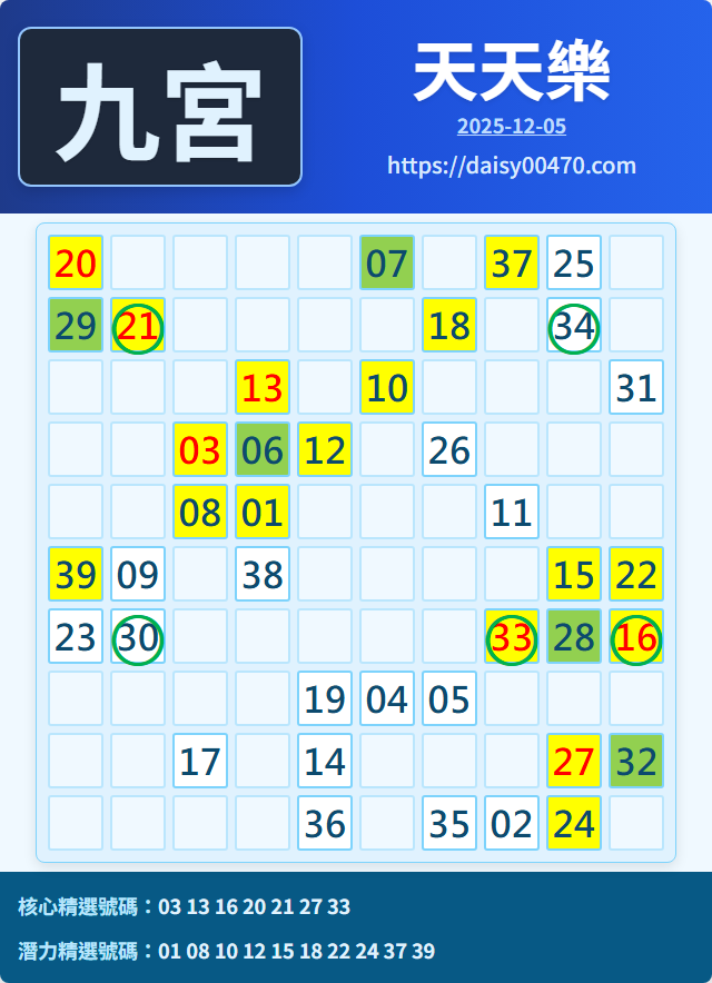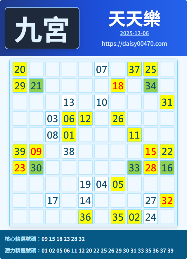 12/6 天天樂 九宮 精選 高機牌 合牌參考