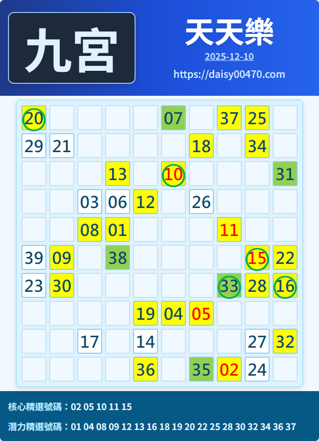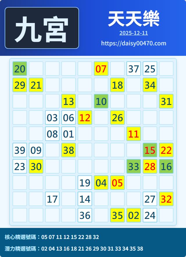 12/11 天天樂 九宮 精選 高機牌 合牌參考