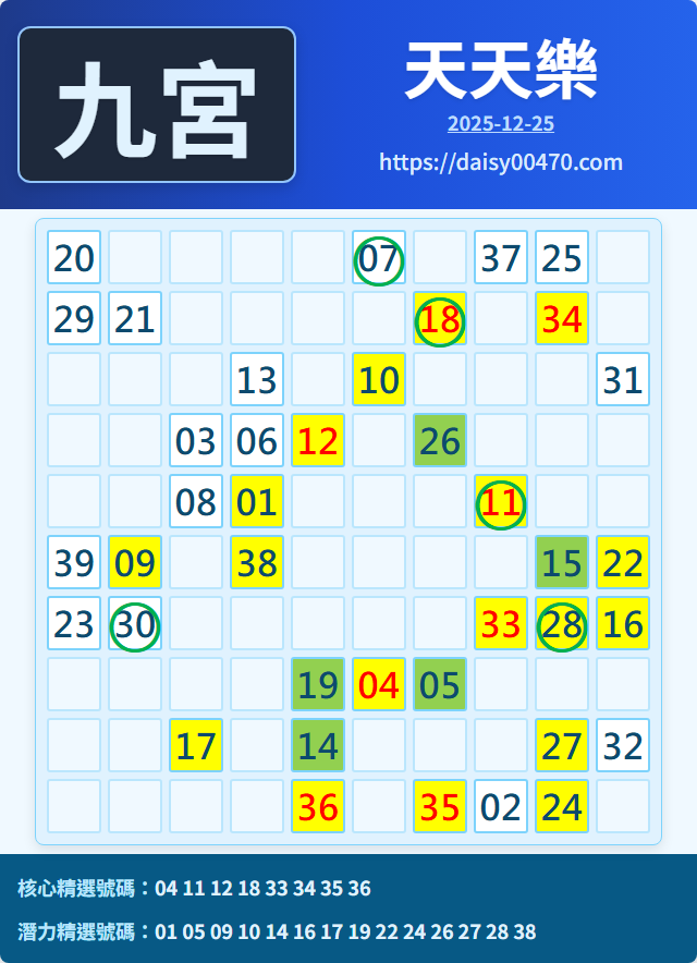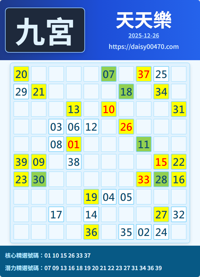 12/26 天天樂 九宮 精選 高低機牌 合牌參考