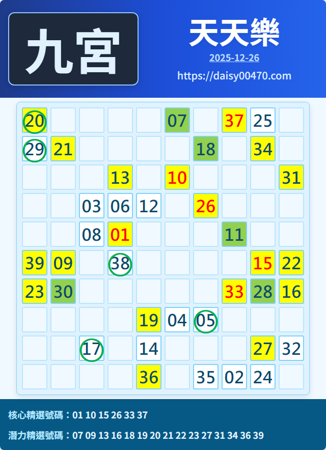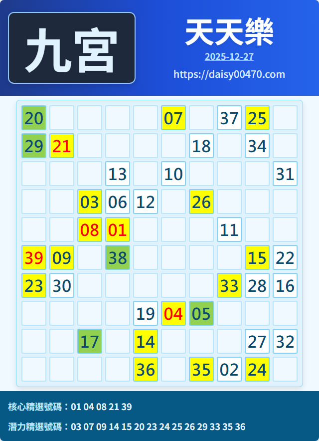 12/27 天天樂 九宮 精選 高低機牌 合牌參考