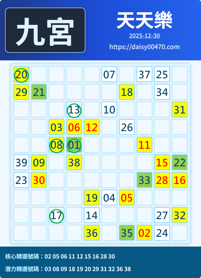 12/31 天天樂 九宮 精選 高機牌 合牌參考