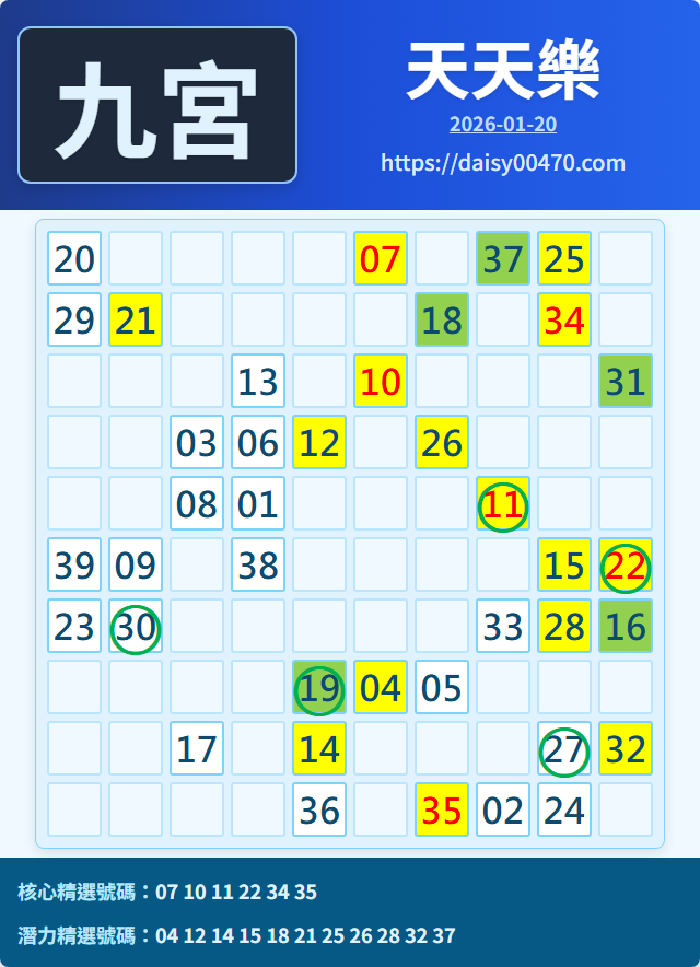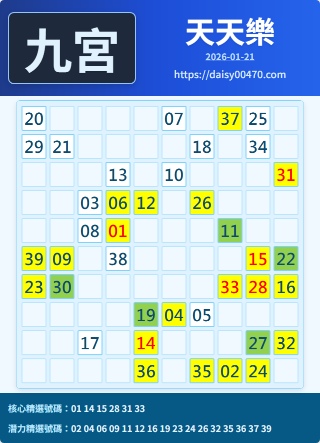 1/21 天天樂 九宮 精選 高機牌 合牌參考