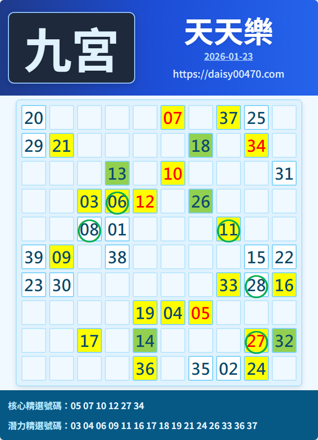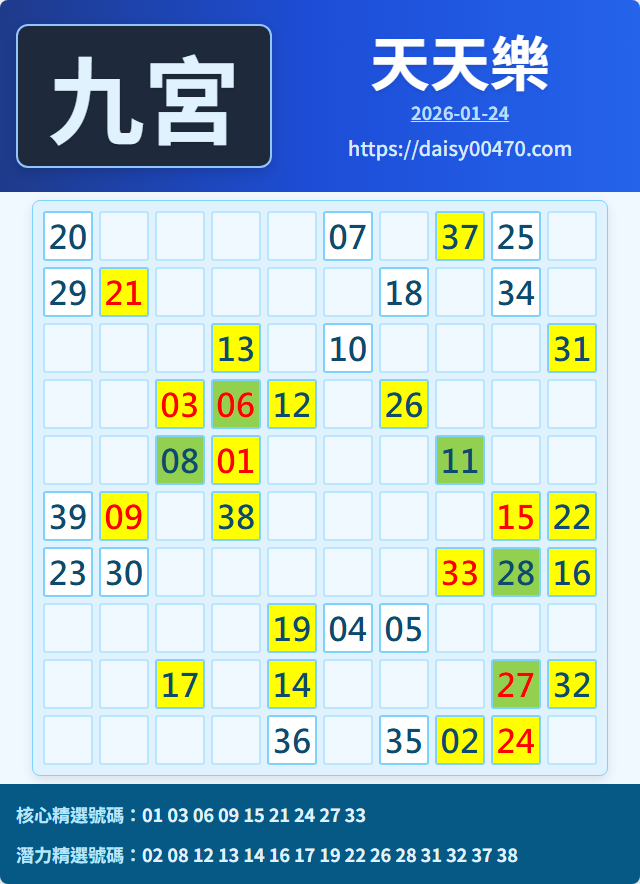 1/24 天天樂 九宮 精選 高低機牌 合牌參考