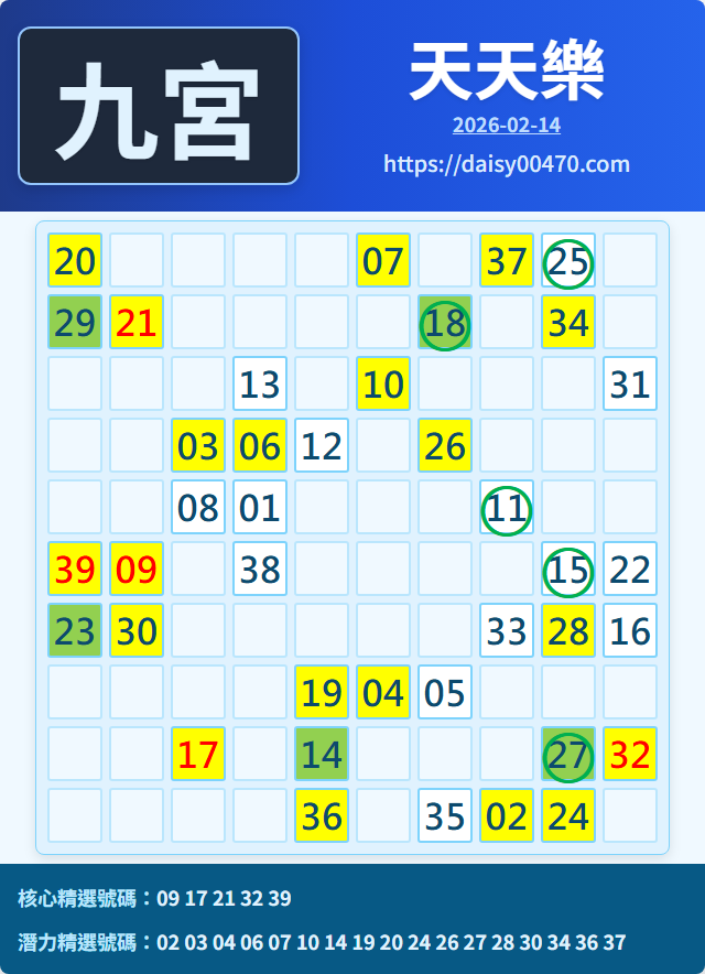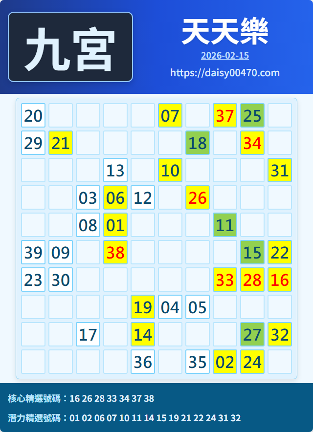 2/15 天天樂 九宮 精選 高機牌 合牌參考