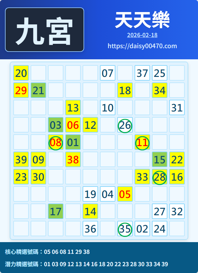 2/19 天天樂 九宮 精選 高機牌 合牌參考