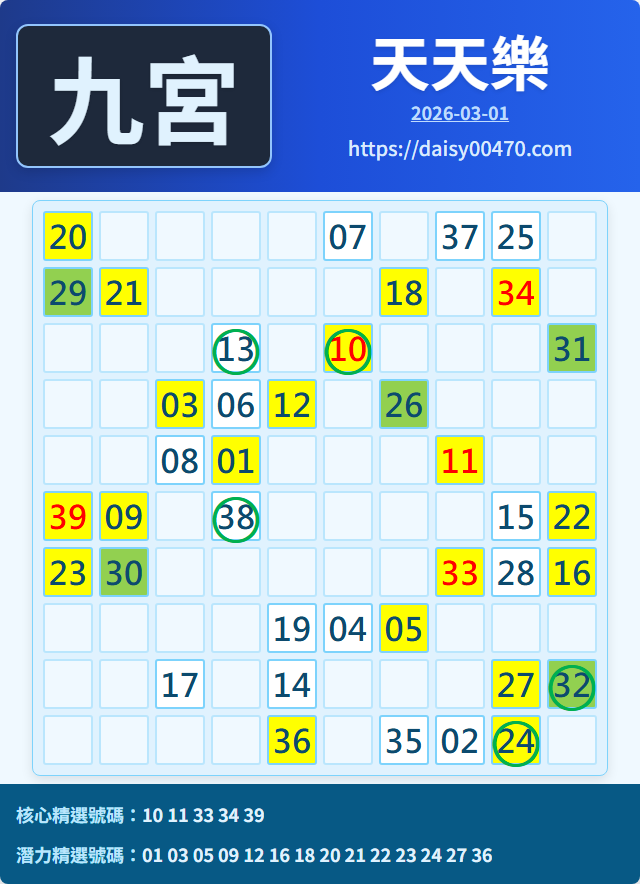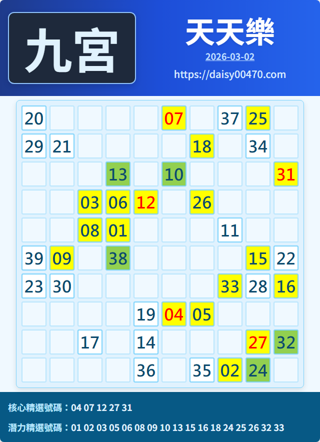 3/2 天天樂 九宮 精選 高機牌 合牌參考