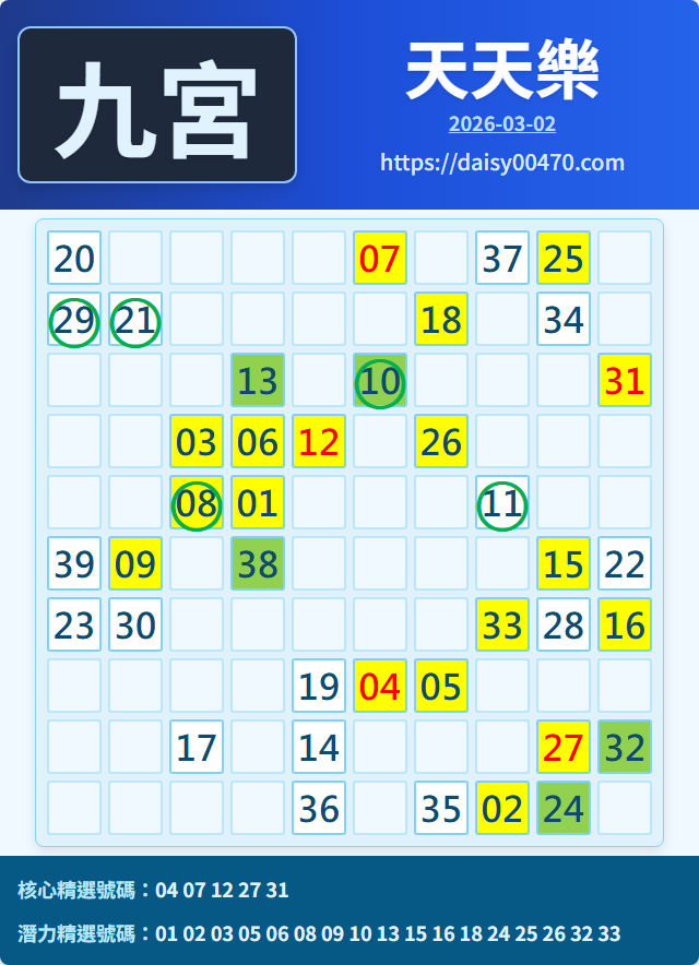 使用說明:使用說明:九宮圖為參考,以自己抓到的牌為準,分為入宮期和出宮期,開四支出宮一般三期內會開四到五支入宮,開四支或五支入宮則要小心三期內會開四支出宮。