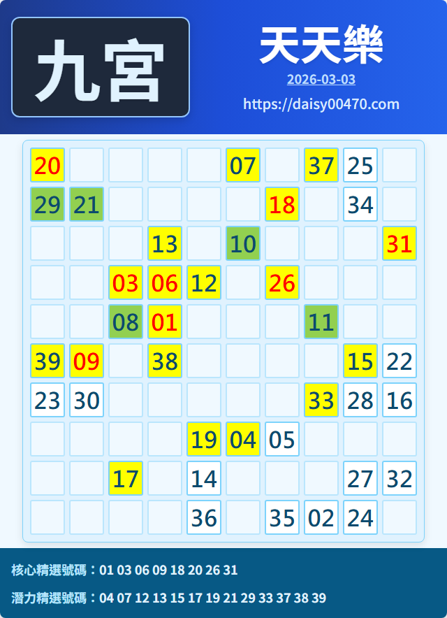 3/3 天天樂 九宮 精選 高機牌 合牌參考
