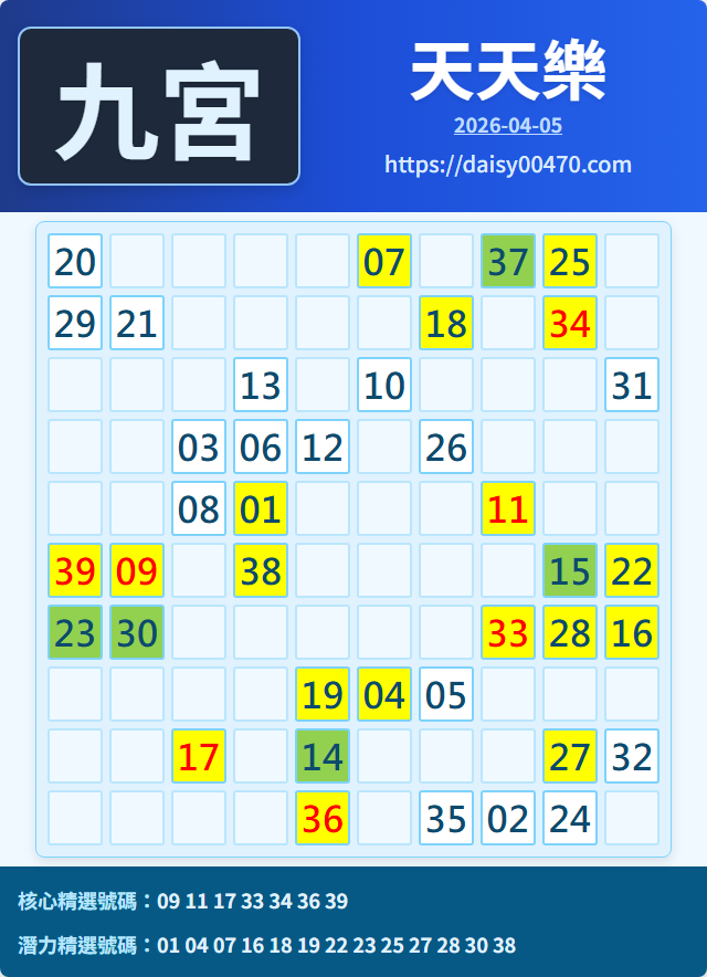 使用說明:使用說明:九宮圖為參考,以自己抓到的牌為準,分為入宮期和出宮期,開四支出宮一般三期內會開四到五支入宮,開四支或五支入宮則要小心三期內會開四支出宮。