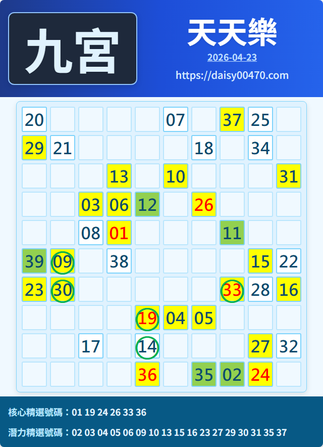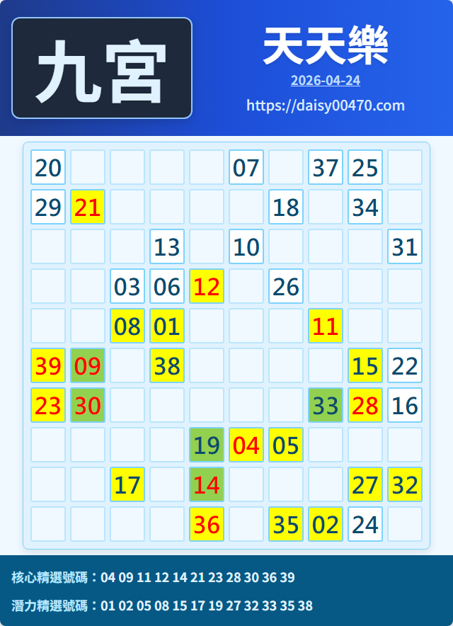 4/24 天天樂 九宮 精選 高機牌 合牌參考