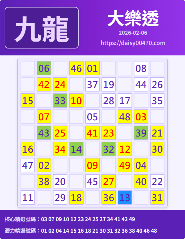 2/6 大樂透 九龍 精選 高機牌 合牌參考