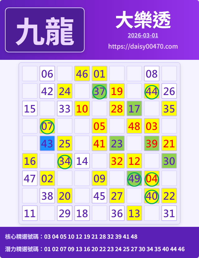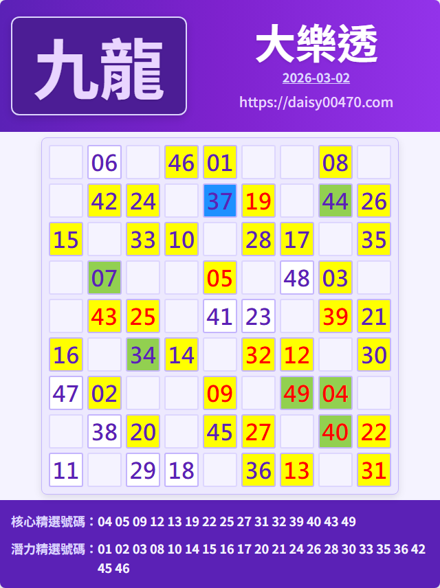 3/2 大樂透 九龍 精選 高機牌 合牌參考